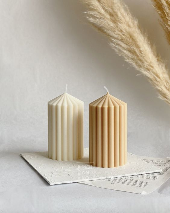 Vela artesanal de cera de soya y abeja. Diseño decorativo y fragancias naturales.